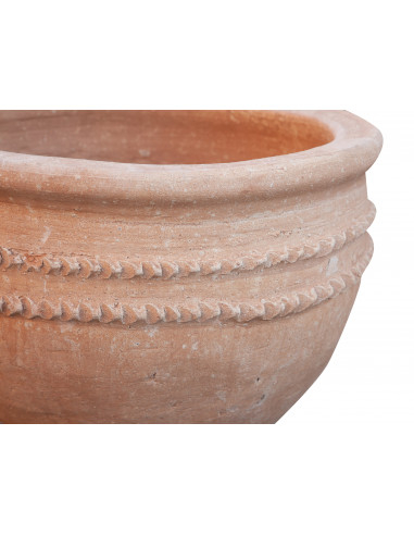 | Vaso feito à mão e madeira-cozido como na antiguidade do tamanho 57 cm, profundidade 57 cm, altura 40 cm. Também é adequado para uso como um vegetal ao ar livre para plantas e flores ou como uma caspa decorativa interior. Originalmente usado como recipientes de datas. Entre as tradições artesanais de Marrocos um lugar de interesse é ocupado pela produção de vasos de terracota e amphoras. Os métodos de processamento são transmitidos de geração em geração e foram preservados ao longo dos séculos. Como uma questão de artigos feitos à mão, tamanhos diferentes e tons de cor, cada item é uma peça única. |