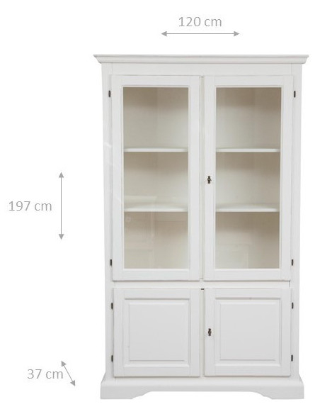 Veterina em madeira maciça telha largura 120 cm, profundidade 37 cm, altura 197 cm, equipado com duas grandes prateleiras com fecho de porta dupla na parte inferior e três prateleiras confortáveis no topo. Com um design refinado e estilo Country, graças ao cuidado feito à mão na Itália, dá um toque de romantismo inconfundível para qualquer ambiente.