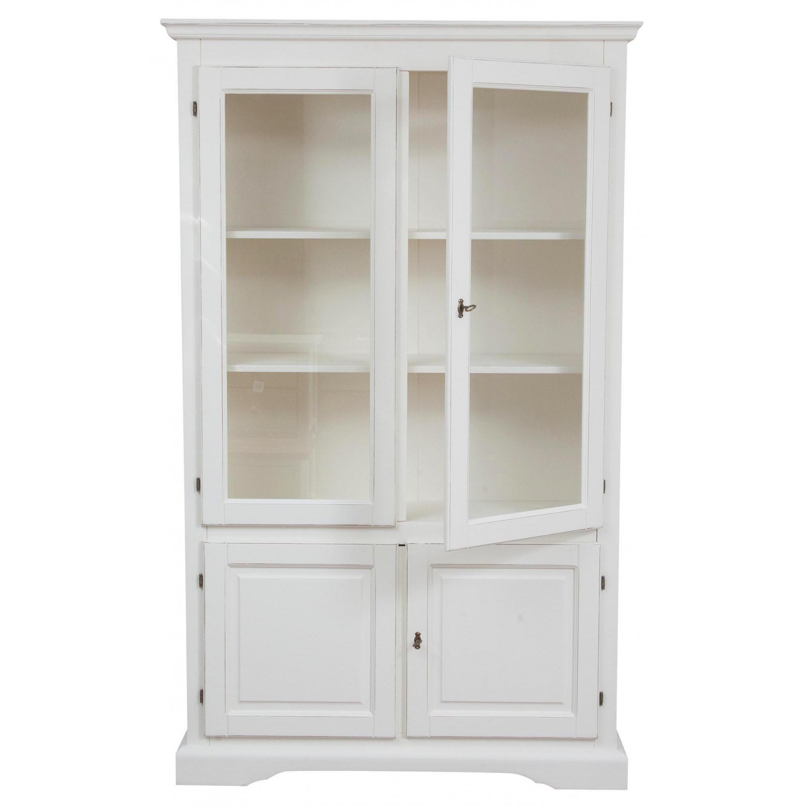 Vitrina country em madeira maciça de limão com acabamento branco antigo W120xDP37xH197 cm. Feito na Itália