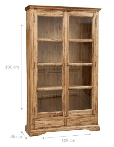 Vetrina L109xPR36xH180 cm em madeira maciça, equipado com quatro grandes prateleiras com porta de vidro com chave e duas gavetas funcionais feitas com quadros de cauda de andorinha e botões de madeira. Feito em Itália, uma garantia de robustez e qualidades estéticas e funcionais inigualáveis, combinadas com o design simples, mas elegantemente rústico, torná-lo um complemento perfeito para fornecer qualquer ambiente com um toque de estilo país inconfundível.