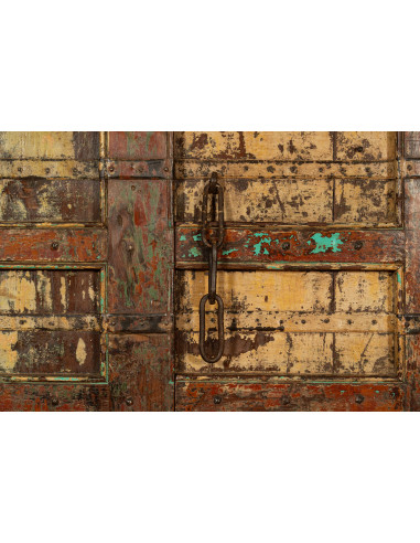 Ușă glisantă medievală veche din lemn masiv și fier, pentru interior sau exterior
