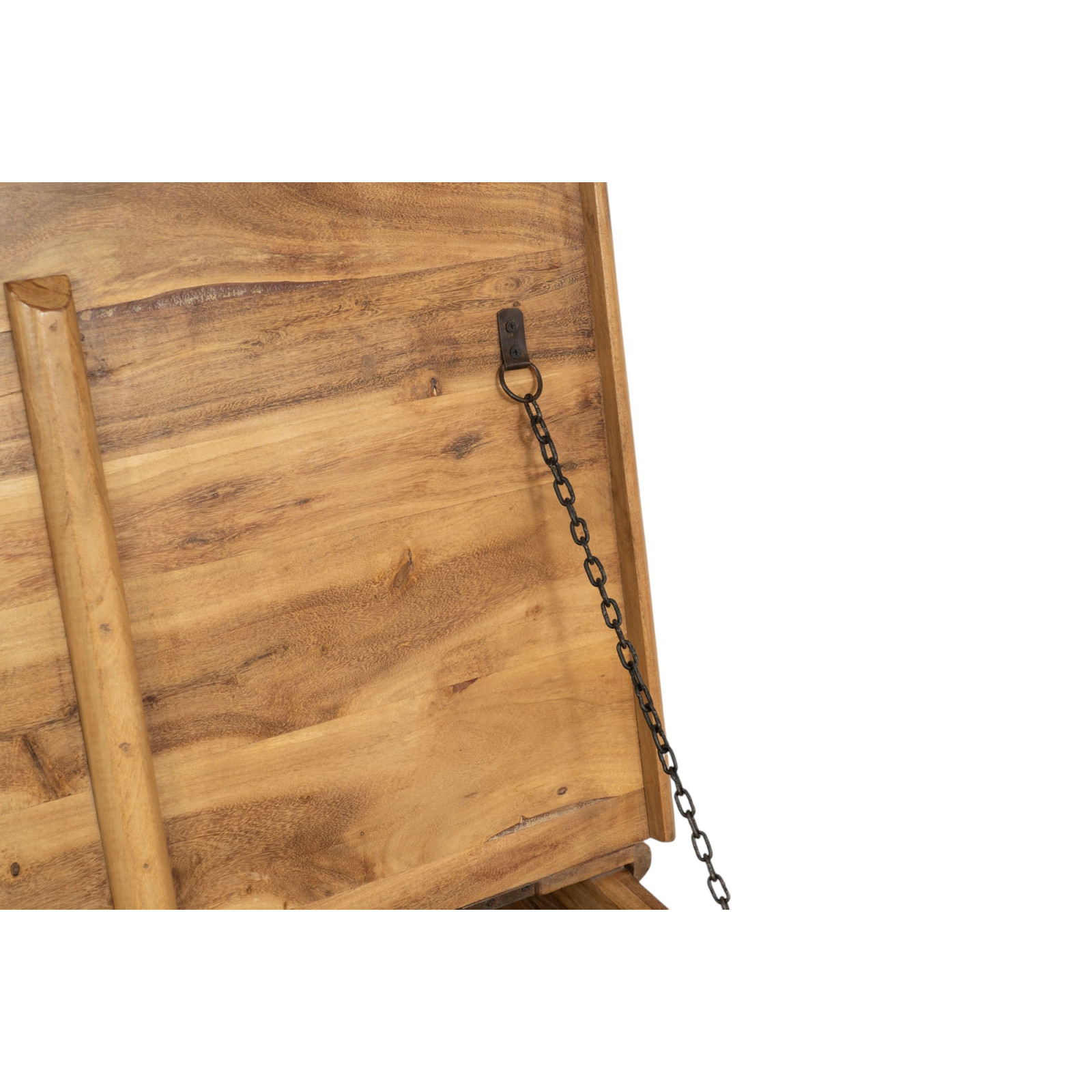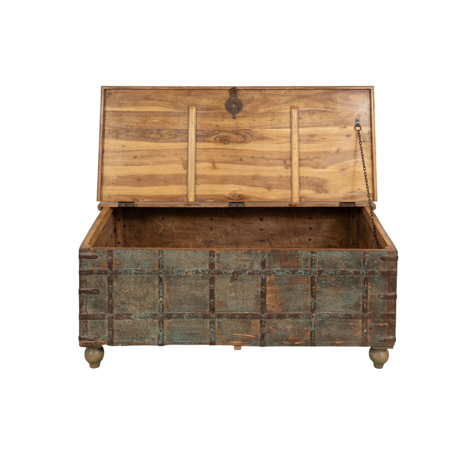 Cufăr din lemn fin lucrat care măsoară 102 cm în lungime, 59 cm în adâncime, 46 cm în înălțime. Acest cufăr original din lemn are un capac înfrumusețat cu un finisaj decapat. Elegantă, compactă, solidă și funcțională, rezultatul este o piesă de mobilier cu un aspect retro elegant, care poate fi folosită și pentru a înfrumuseța cel mai modern spațiu din casa dvs. Poate fi folosită și ca un cufăr, bancă, container, ladă. Toate măsurătorile se referă la dimensiunile totale maxime ale articolului.