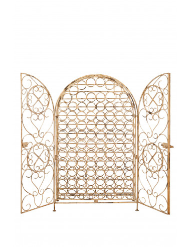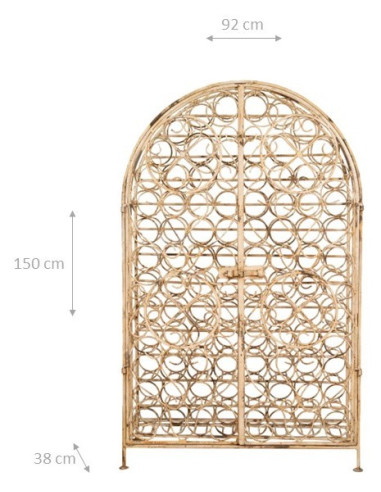 Raft de vin de 92 cm lățime, 38 cm adâncime, 150 cm înălțime, realizat din fier forjat masiv, lucrat manual, foarte robust și greu. Cu o capacitate pentru sticle, suportul pentru vinuri este o piesă de mobilier funcțională și practică pentru camerele importante. Datorită materialului solid și a celor patru picioare de la bază, suportul pentru sticle este foarte stabil. Ideal pentru camere private, dar și pentru crame, baruri, restaurante, pizzerii, hanuri, taverne, hoteluri, pub-uri, recepții, săli de jocuri, cluburi de noapte, magazine, centre de wellness, săli de așteptare, birouri, săli de ședințe, studiouri profesionale. Toate măsurătorile se referă la dimensiunile totale maxime ale articolului.