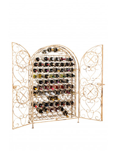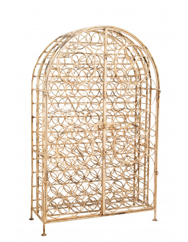 Dulap solid din fier forjat pentru pivniță de vinuri cu finisaj alb antic