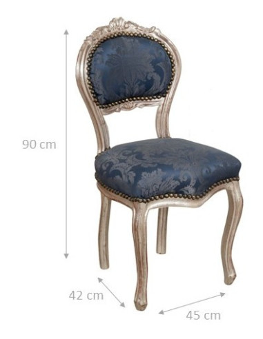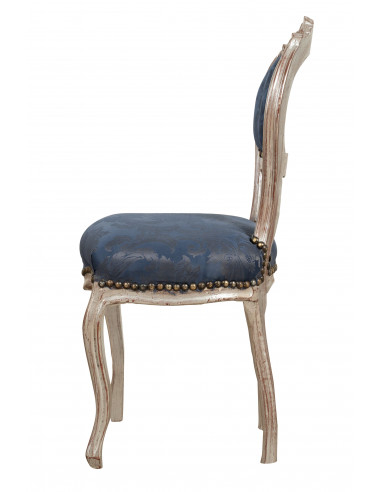 Fotoliu francez în stil Ludovic al XVI-lea din lemn masiv de fag, finisaj argintiu și albastru