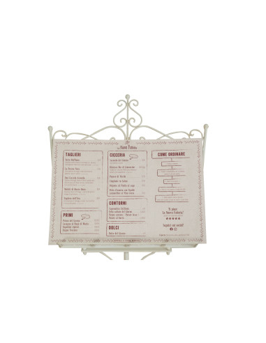 Prezidiu practic și foarte stabil L46xPR32xH139 cm, din fier forjat masiv. Reglabil în înălțime de la un minim de 120 cm la un maxim de 165 cm (măsurătorile se referă la dimensiunea maximă a articolului), este o piesă de mobilier versatilă și elegantă. De asemenea, este foarte potrivită ca suport de meniu pentru restaurante.