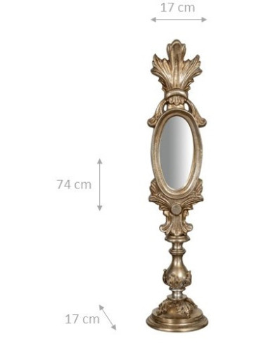 Oglindă în picioare din lemn cu finisaj argintiu antichizat. Dimensiuni: lungime 17 cm, adâncime 17 cm, înălțime 74 cm. Lucrate și finisate cu grijă de către vechii artizani florentini. Ușor de aplicat pentru a îmbogăți și decora orice mediu. Prevăzut deja cu cârlige pentru montare pe perete. Articol fabricat în întregime în Italia. Punct de referință incontestabil pentru cei care doresc să își decoreze locuințele cu calitate și eleganță, Biscottini este capabil să satisfacă orice nevoie în materie de amenajare, datorită catalogului său extins de articole pentru design interior.