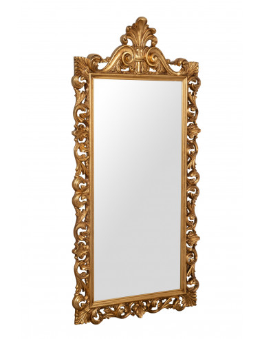 OGLINDĂ DE PERETE DIN LEMN CU FINISAJ DIN FRUNZE DE AUR ANTIC, REALIZATĂ ÎN ITALIA