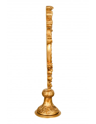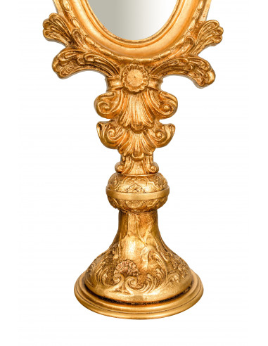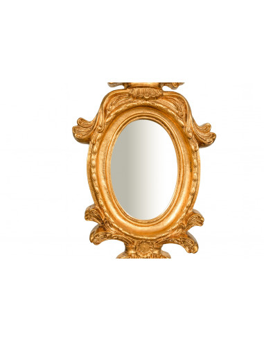 OGLINDĂ DIN LEMN, FABRICATĂ ÎN ITALIA, CU FINISAJ DIN FRUNZE DE AUR ANTIC