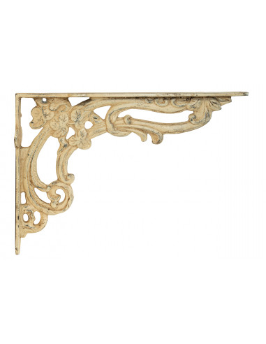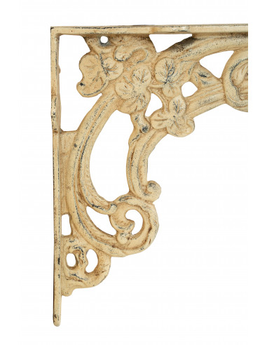 Suport de raft foarte solid și robust din fontă, cu dimensiuni de 40 cm lățime, 11 cm adâncime, 59 cm înălțime, cu un finisaj precis realizat complet manual, obținând un adevărat efect antic. Datorită decorului său, funcționalitatea sa este combinată cu eleganța pentru a completa orice mediu.