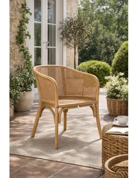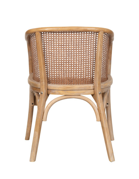 Scaun din lemn masiv cu șezut din ratan, finisaj nuc deschis