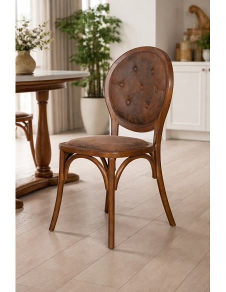 Scaun din lemn masiv cu șezut tapițat, finisaj nuc închis