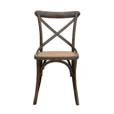 Scaun lățime 48 cm, adâncime 52 cm, înălțime 88 cm, în stil Thonet, din frasin masiv, cu spătar încrucișat și șezut din rattan împletit. Datorită designului său bistro, este ideal pentru a decora orice cameră sau spațiu în stil vintage, fără a sacrifica confortul.