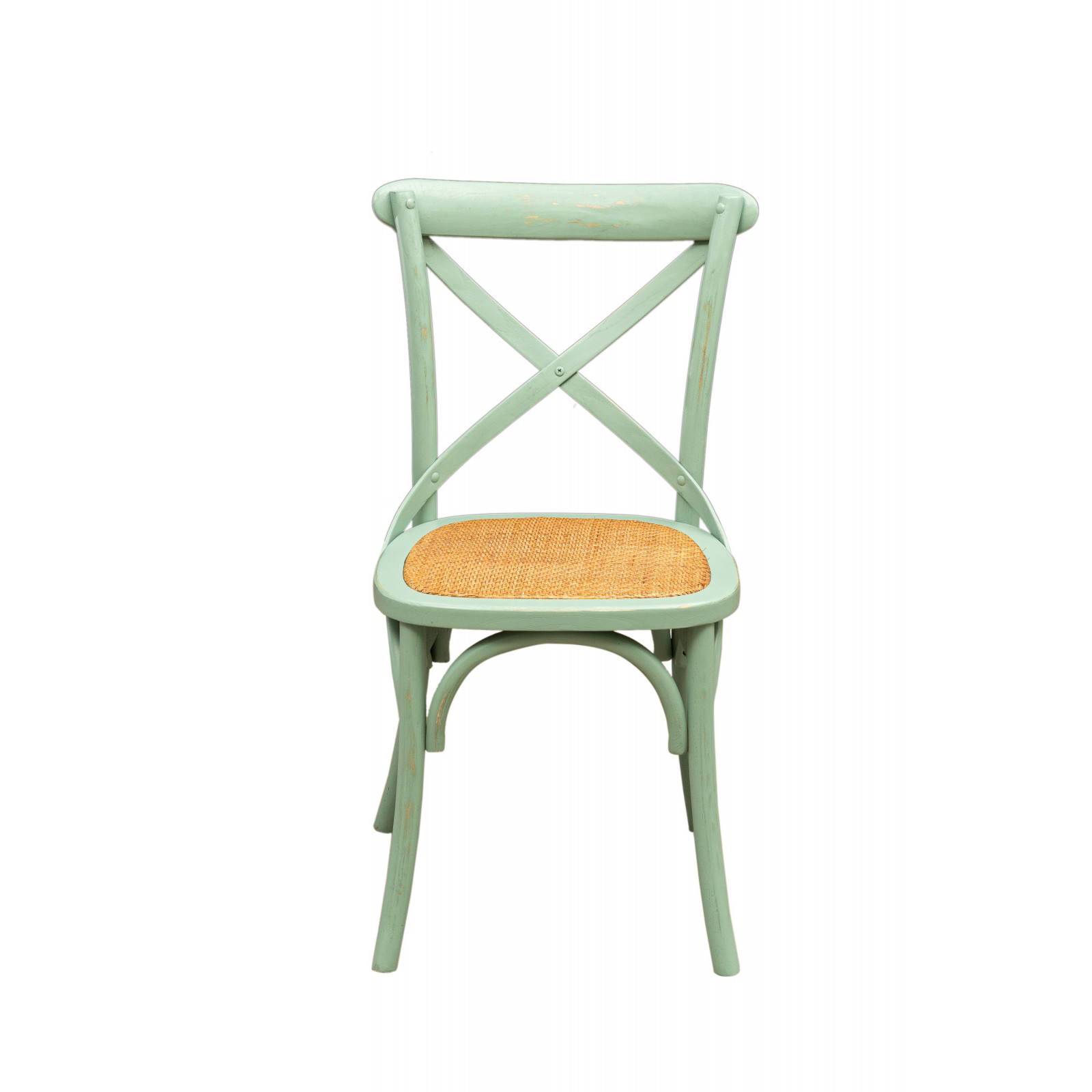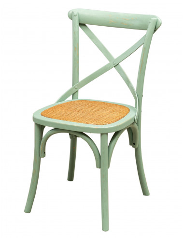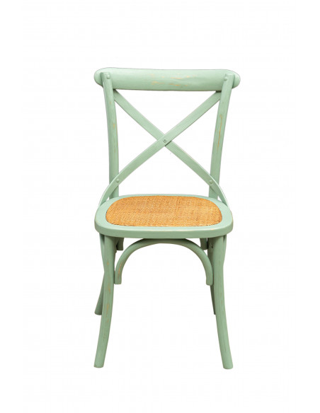 Scaun Thonet Cross din lemn masiv cu șezut din ratan, finisaj verde antic