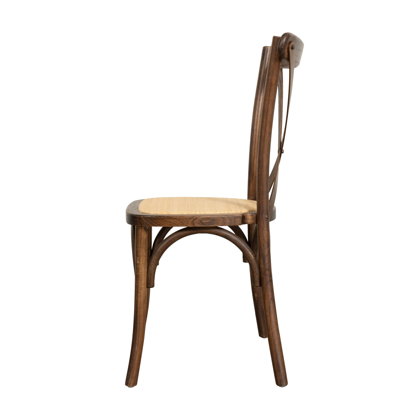 Scaun Thonet Cross din lemn masiv cu șezut din ratan finisat în nuanța nuc, stivuibil