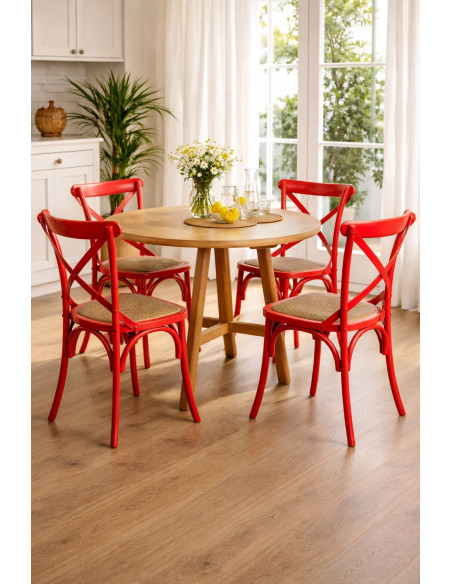 Scaun Thonet Cross din lemn masiv cu șezut din ratan roșu