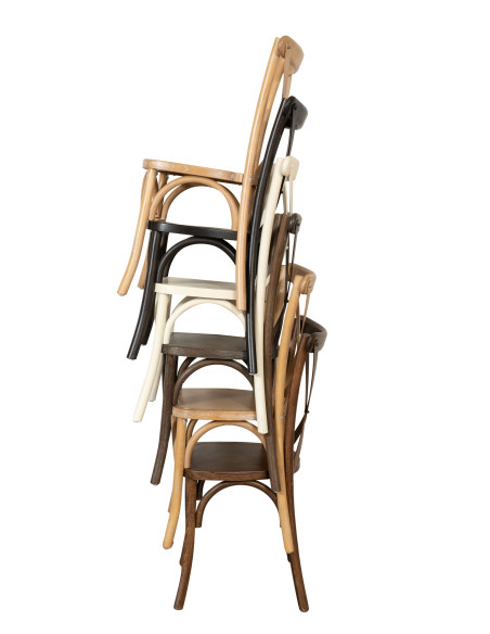 Scaun cu dimensiunile lățime 42 cm, adâncime 43 cm, înălțime 88 cm în stil Thonet realizat din frasin masiv cu spătar încrucișat. Datorită designului său bistro, este ideal pentru a mobila orice cameră sau local în stil vintage, fără a sacrifica confortul. Înălțimea de la podea la scaun este de 45 cm.