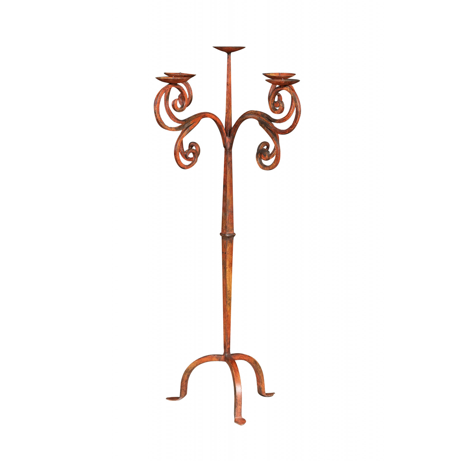 Sfeșnic de podea din fier forjat, lucrat manual, cu finisaj roșu antic, L49XPR49XH94 cm