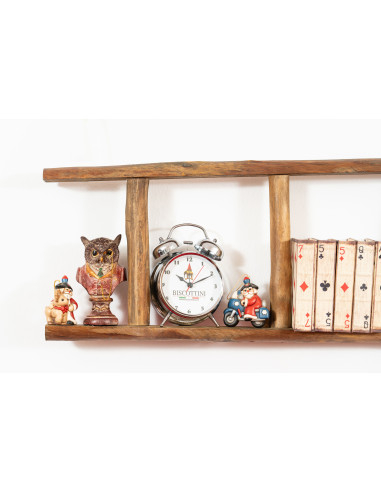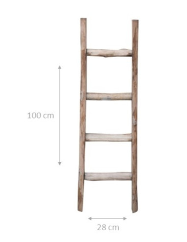 Scară din lemn cu dimensiunile L28xPR7xH100 cm. Aceasta reproduce fidel atât din punct de vedere estetic, cât și al construcției, scările vechi, cu laturile realizate dintr-un singur trunchi de copac tăiat în două. O piesă de mobilier foarte versatilă, precum și un instrument funcțional pentru viața de zi cu zi. Deoarece sunt realizate manual, fiecare scară poate fi ușor diferită una de cealaltă în ceea ce privește finisajul.