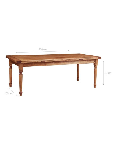 Masă extensibilă pe țară în lemn de tei solid L220xPR100xH80 cm. Realizat în Italia