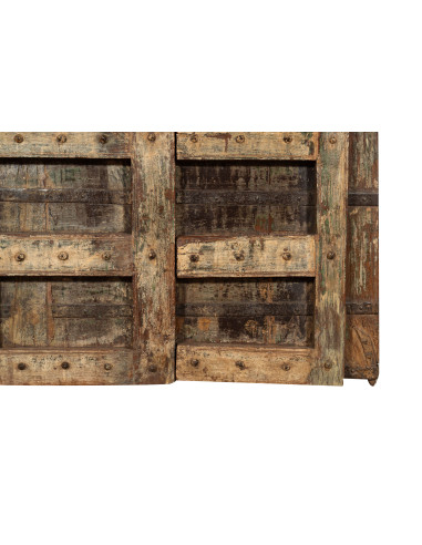 Ușă glisantă medievală veche din lemn masiv și fier, pentru interior sau exterior
