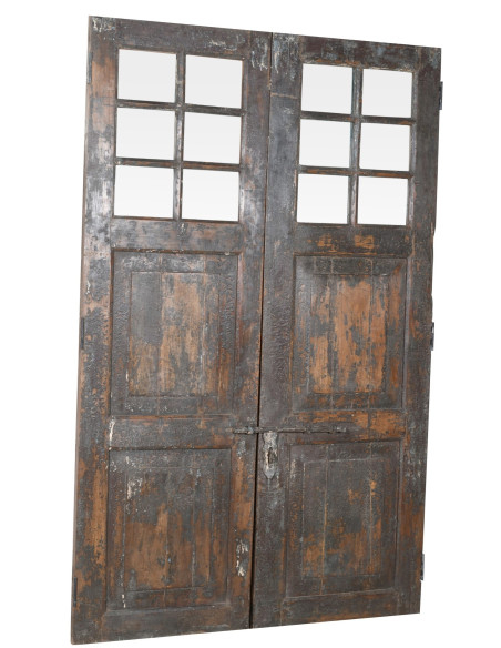 Ușă veche și antică medievală din lemn masiv și fier pentru uz interior sau exterior, cu sticlă